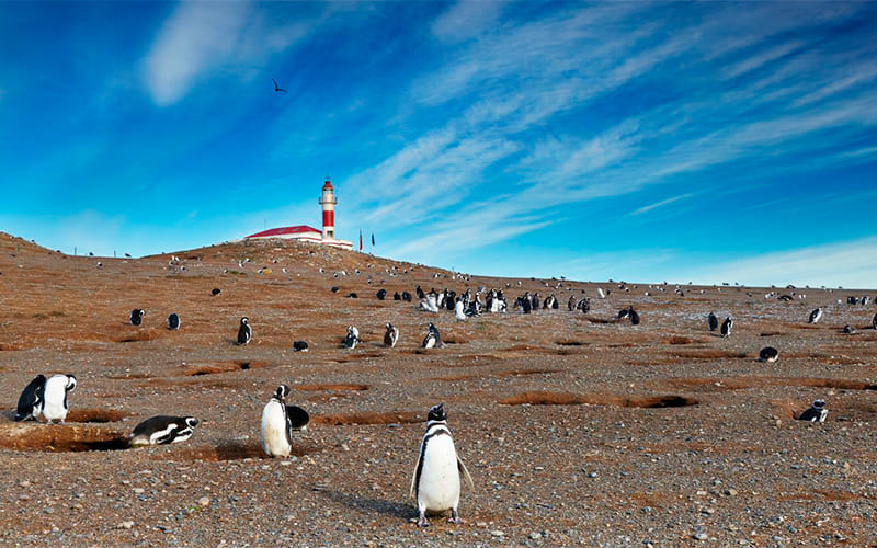 El recorrido puede continuar hacia Punta Arenas, ciudad ubicada en el histórico Estrecho de Magallanes, donde se unen los océanos Atlántico y Pacífico. Desde aquí es posible realizar avistamientos de pingüinos y ballenas, conectando con la fauna más emblemática del extremo sur.
